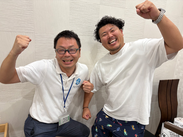 子供を連れての訪問時には、お菓子や動画、三又さんのギャグなどで楽しませて頂き、おもちゃ屋さんに遊びに行くような感覚でした。また、社長の奥様から頂いたポーチもとても気に入っており、毎日肌身離さず使わせて頂いております。