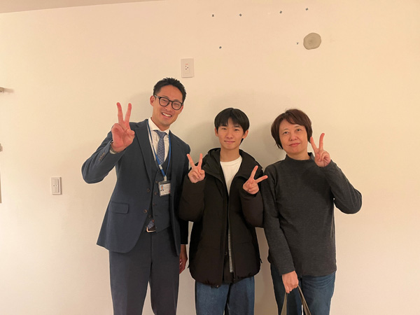 この度は様々な購入条件があったにも関わらず、いつも家族と同じ目線で考えて頂き、今回の物件を紹介して頂きました。