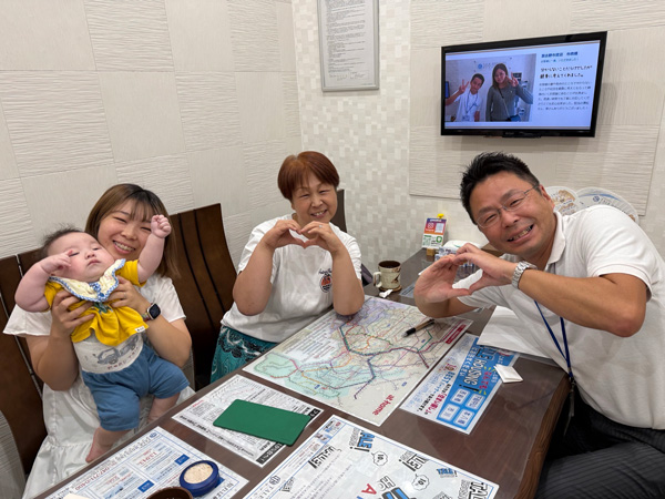 子供を連れての訪問時には、お菓子や動画、三又さんのギャグなどで楽しませて頂き、おもちゃ屋さんに遊びに行くような感覚でした。また、社長の奥様から頂いたポーチもとても気に入っており、毎日肌身離さず使わせて頂いております。